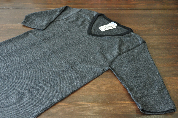 杢がかった細かなボーダーで、ダークトーンながら