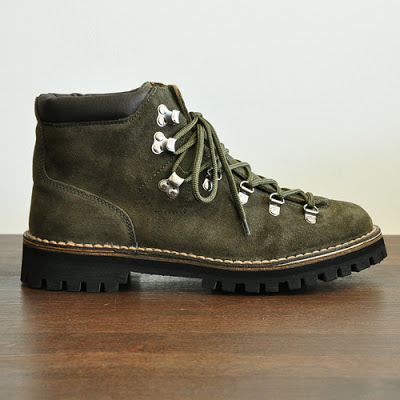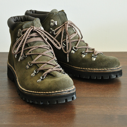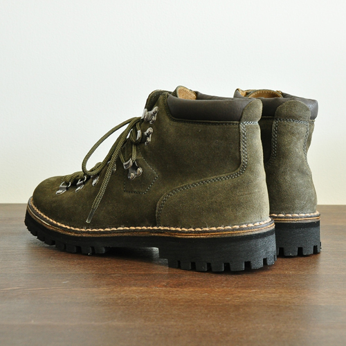 スエードに品の良いカラーをのせたマウンテンブーツ。