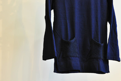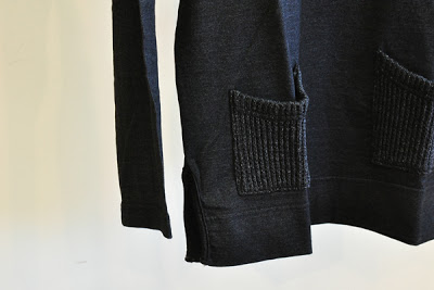 リブ編みのポケットやサイドのスリットが特徴的ですが、