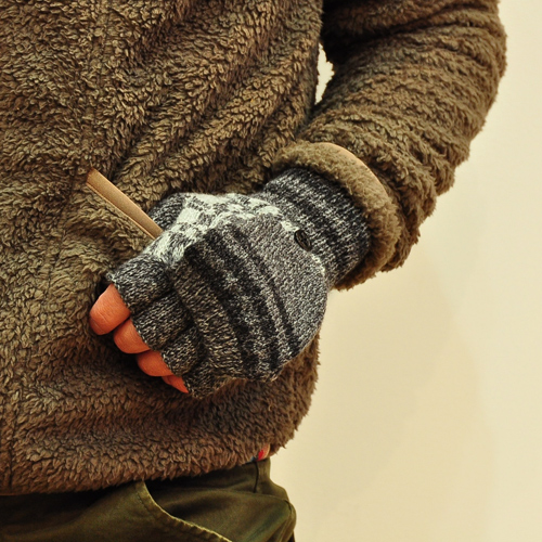 異なる柄の組み合わせのジャカードグローブ。
