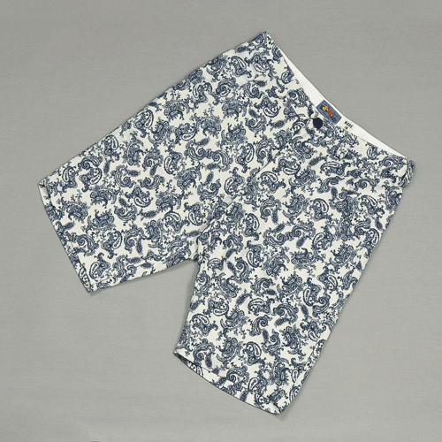 織柄のペイズリーが目をひくブルーブルージャパンのショートパンツ。