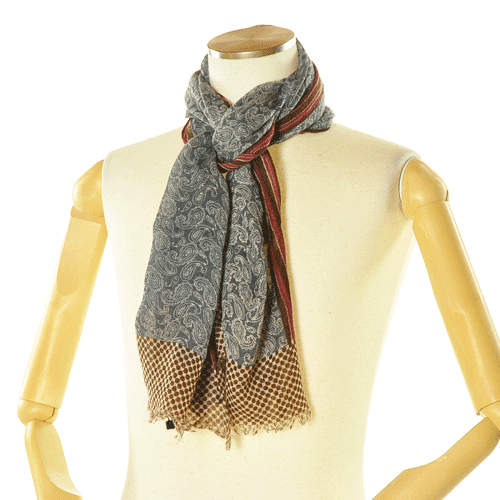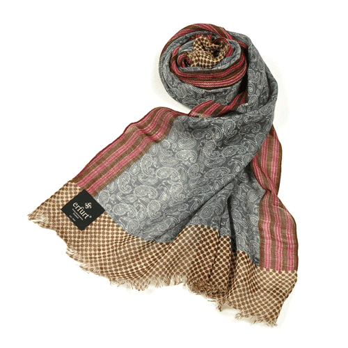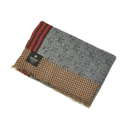 異なる3つの色柄を組み合わせたエルフルトのストール。