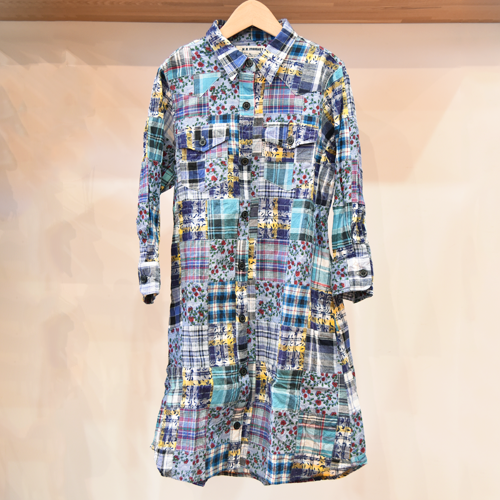 700044624 ウィメンズ マドラスフラワーパッチワークロングウェスタンシャツ