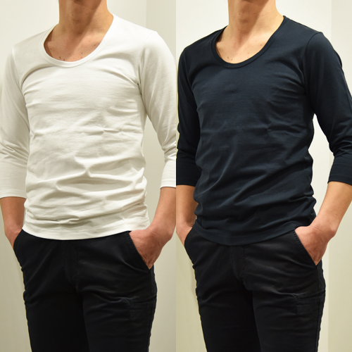 Vネック長袖とともにUネックハーフスリーブも入荷しています。