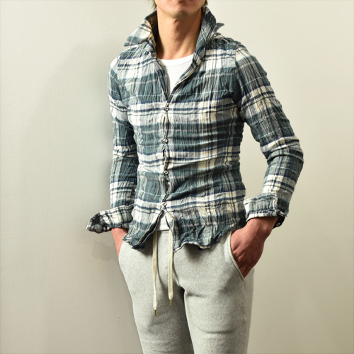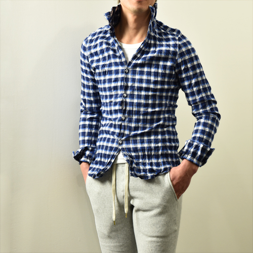 junhashimotoの顔ともいえるシワ加工シャツ。