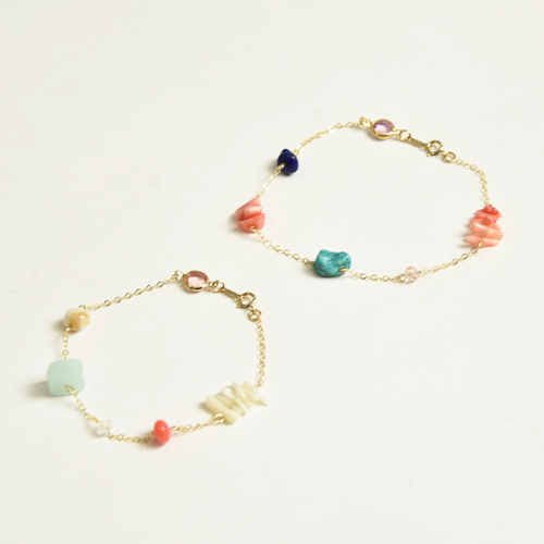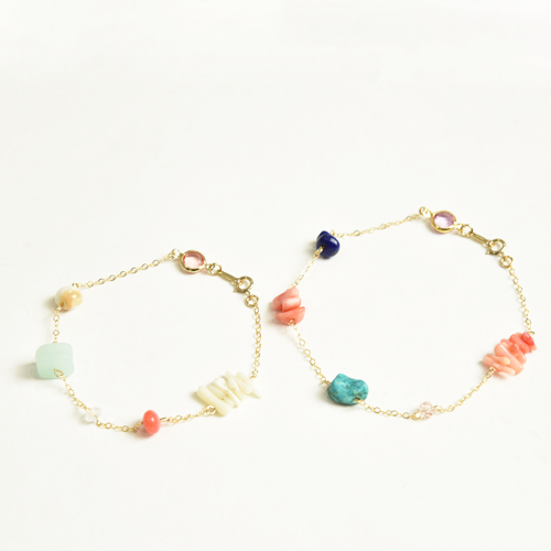 ターコイズなどの天然石、そしてシェルを使ったブレスレット。