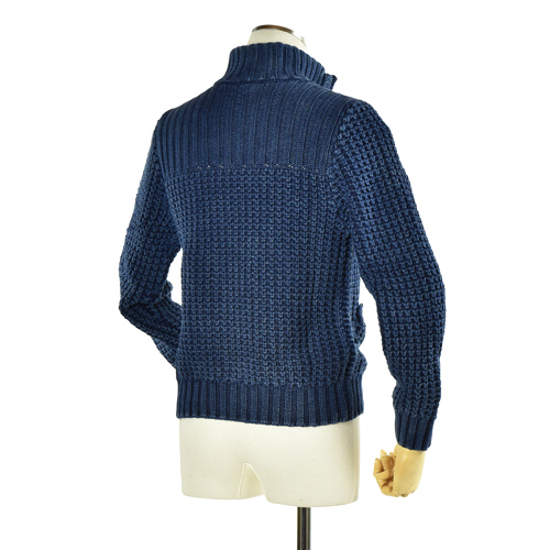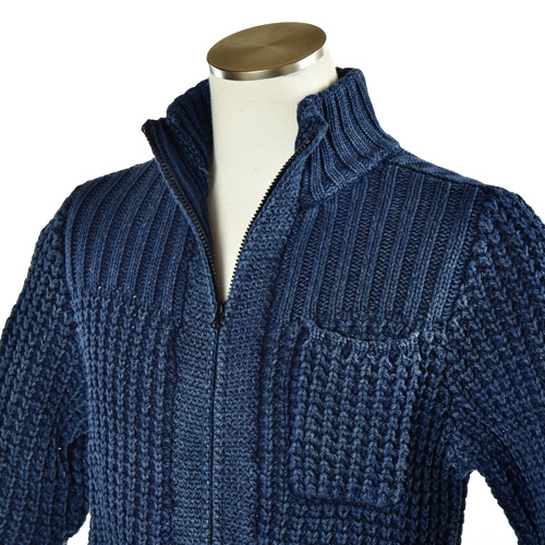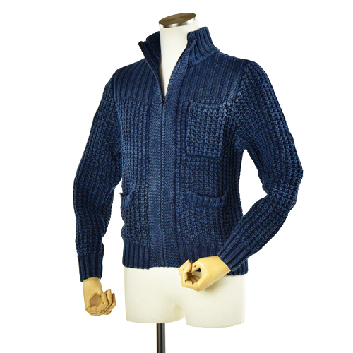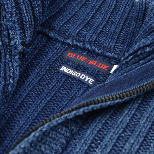 BLUE BLUE INDIGO COTTON LOW GAUGE ZIP JACKET