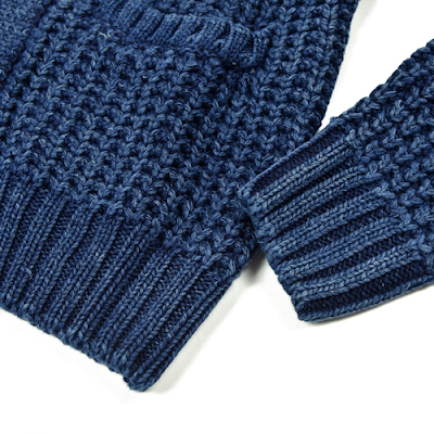 インディゴ染のざっくりとしたローゲージニット。