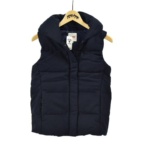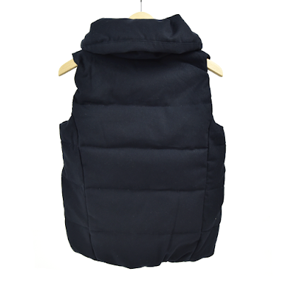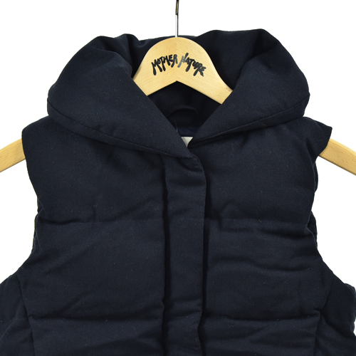 撥水加工を施したウールを表地に使ったダウンベスト