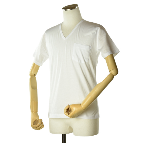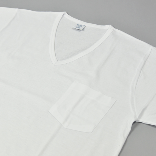 ほどよい開きの首と、胸ポケットがワンポイント。