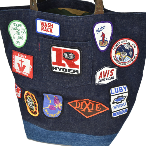 全て異なる種類のワッペンを使い、デニムとカモフラの