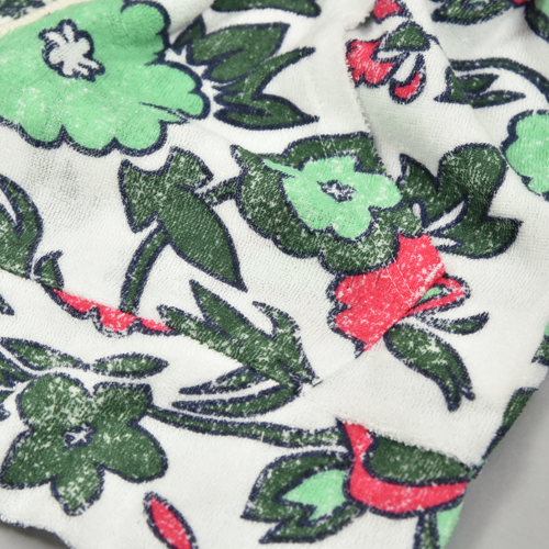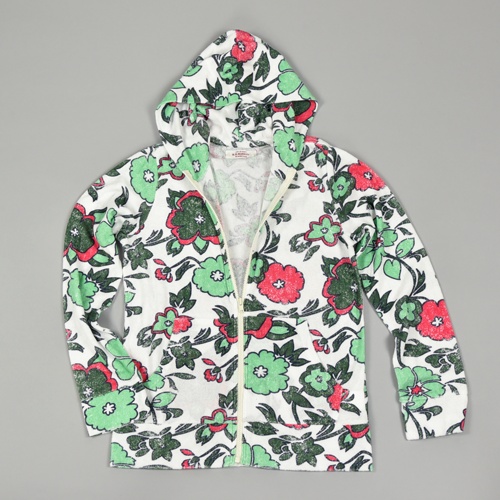 薄手のさらっとしたパイルにプリントのジップアップパーカ。