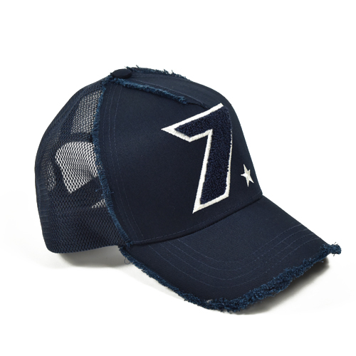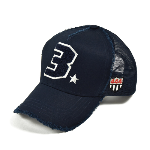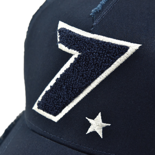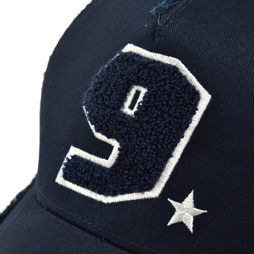 ネイビーの無地にパイルと刺繍を合わせたナンバリング&スターのモデルです。