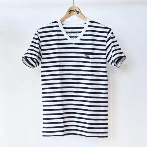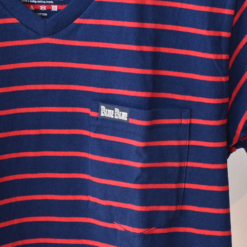 FRUIT OF THE LOOM・BLUE BLUE BORDER V-NECK 2PACK POCKET SS TEE