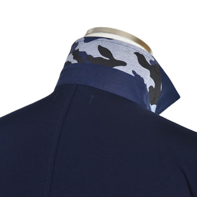 ホリゾンタルカラーの襟に、裏にはカモフラの別生地。