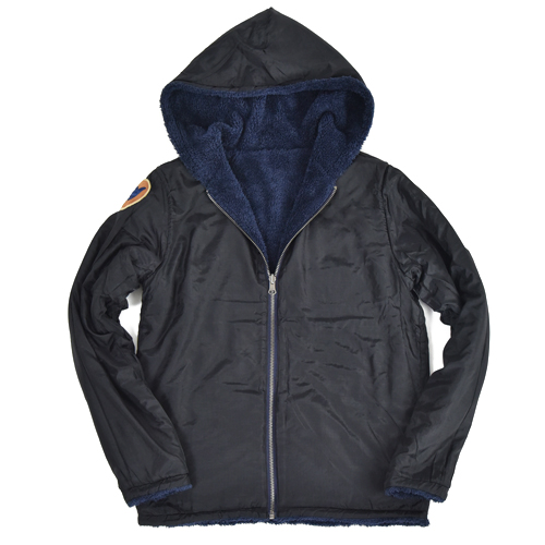 表地にはボアフリース、裏地にはリップストップナイロン、