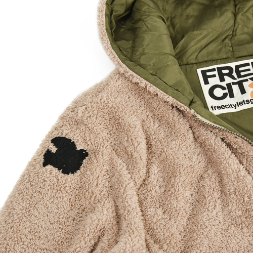 FREECITY DOVE EMBROIDERY FLUFFY FLEECE REVERSIBLE PARKA