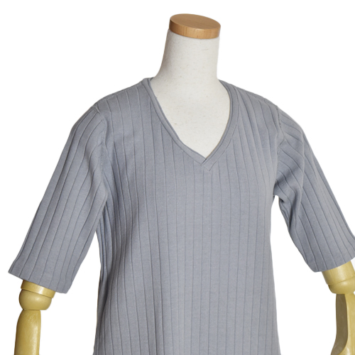程よいあきのVネックと、半袖以上長袖未満のハーフスリーブが