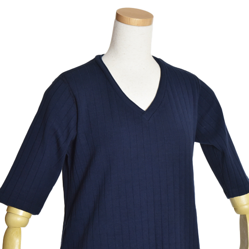 700067355 コットンリブ Vネックハーフスリーブ ワンピース