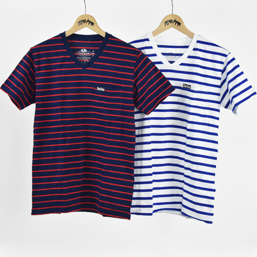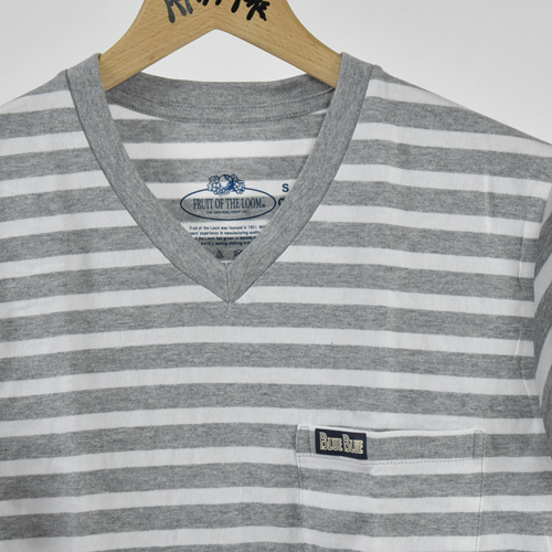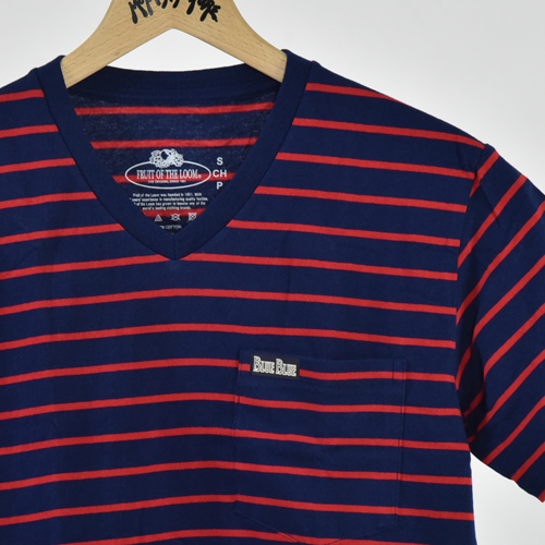 FRUIT OF THE LOOM ・BLUE BLUE BORDER V NECK 2PACK POCKET SS TEE