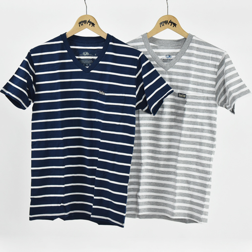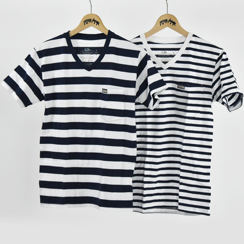 ボーダー Vネック 2パック ポケット Tシャツ