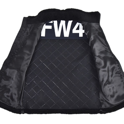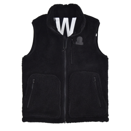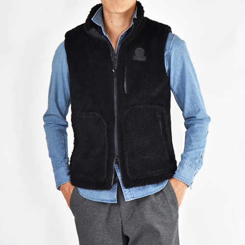 暖かく軽量なイタリア製ボアを使用したスタンドカラーベスト。