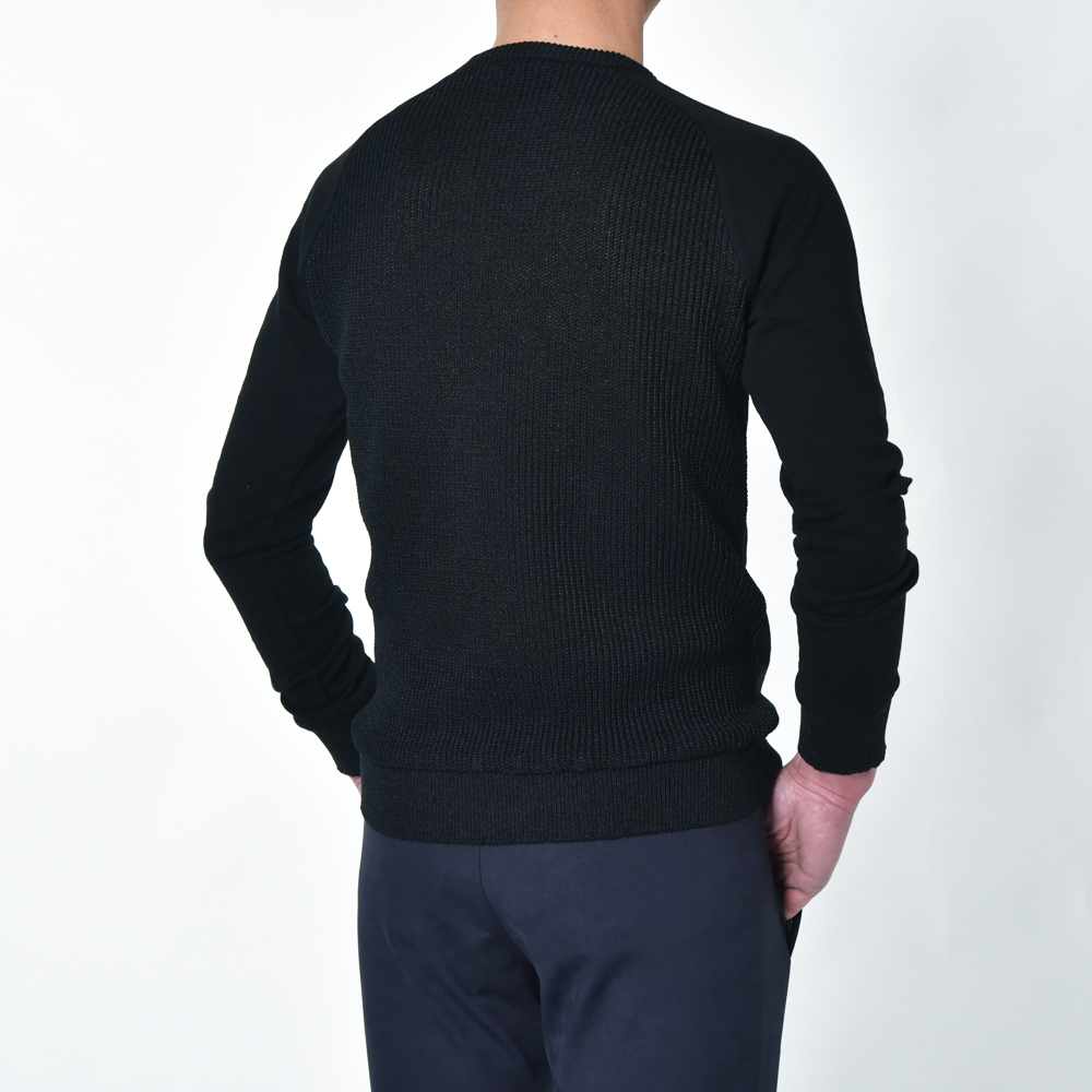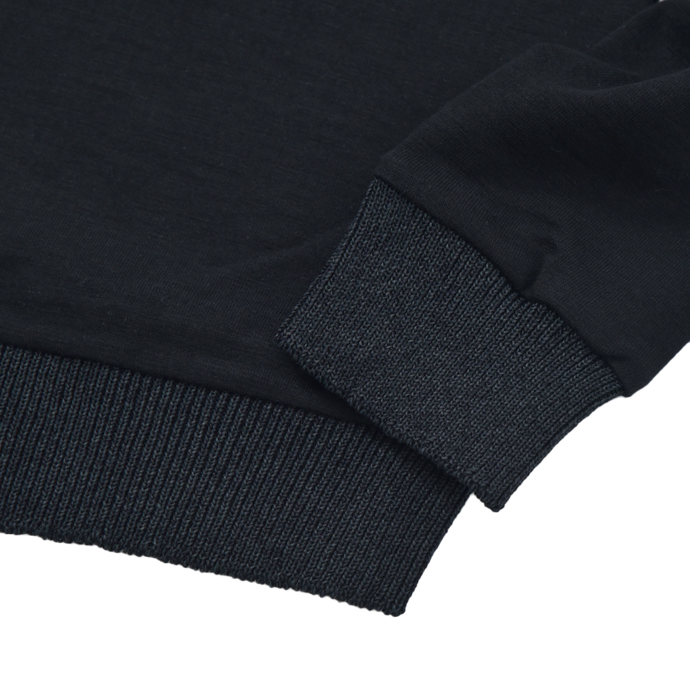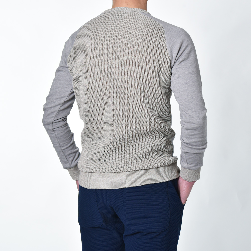 前身頃と袖にはコットンスウェット地を、
