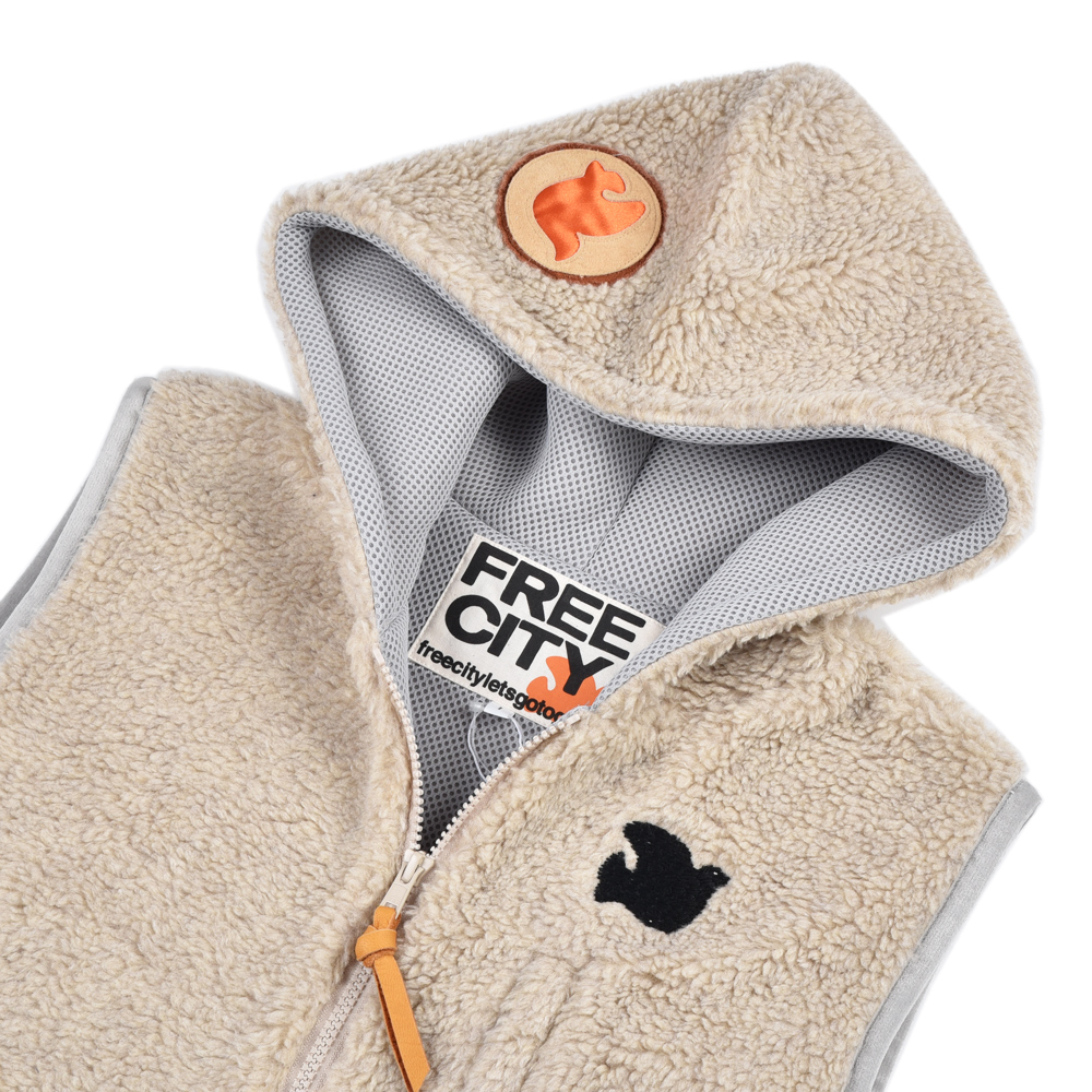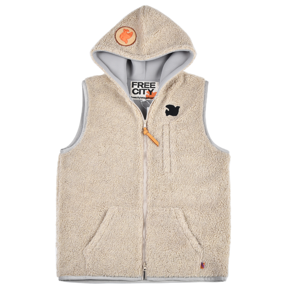 FREECITY DOVE EMBROIDERY SOFT BOA ZIP HOOD VEST