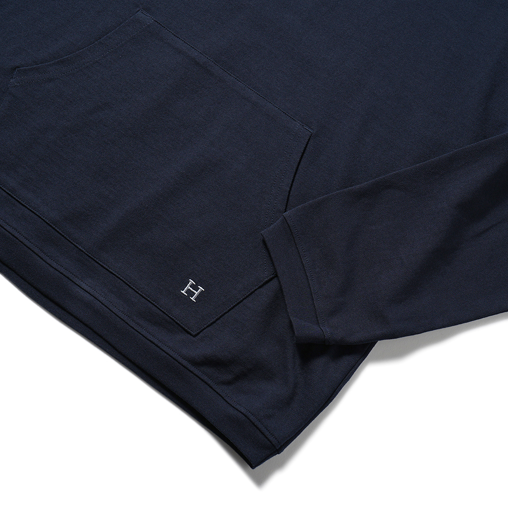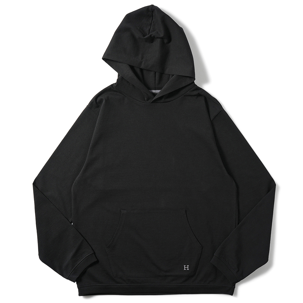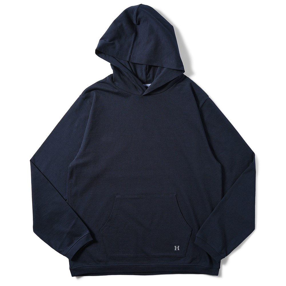 こちらも定番となったコットン天竺生地のプルオーバーパーカ。