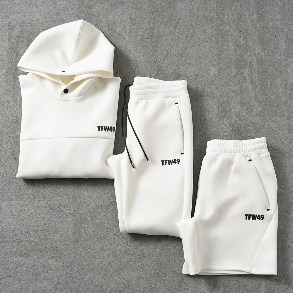 プルオーバーフーディー、ジョガーパンツ、ショートパンツの3モデルをご用意。