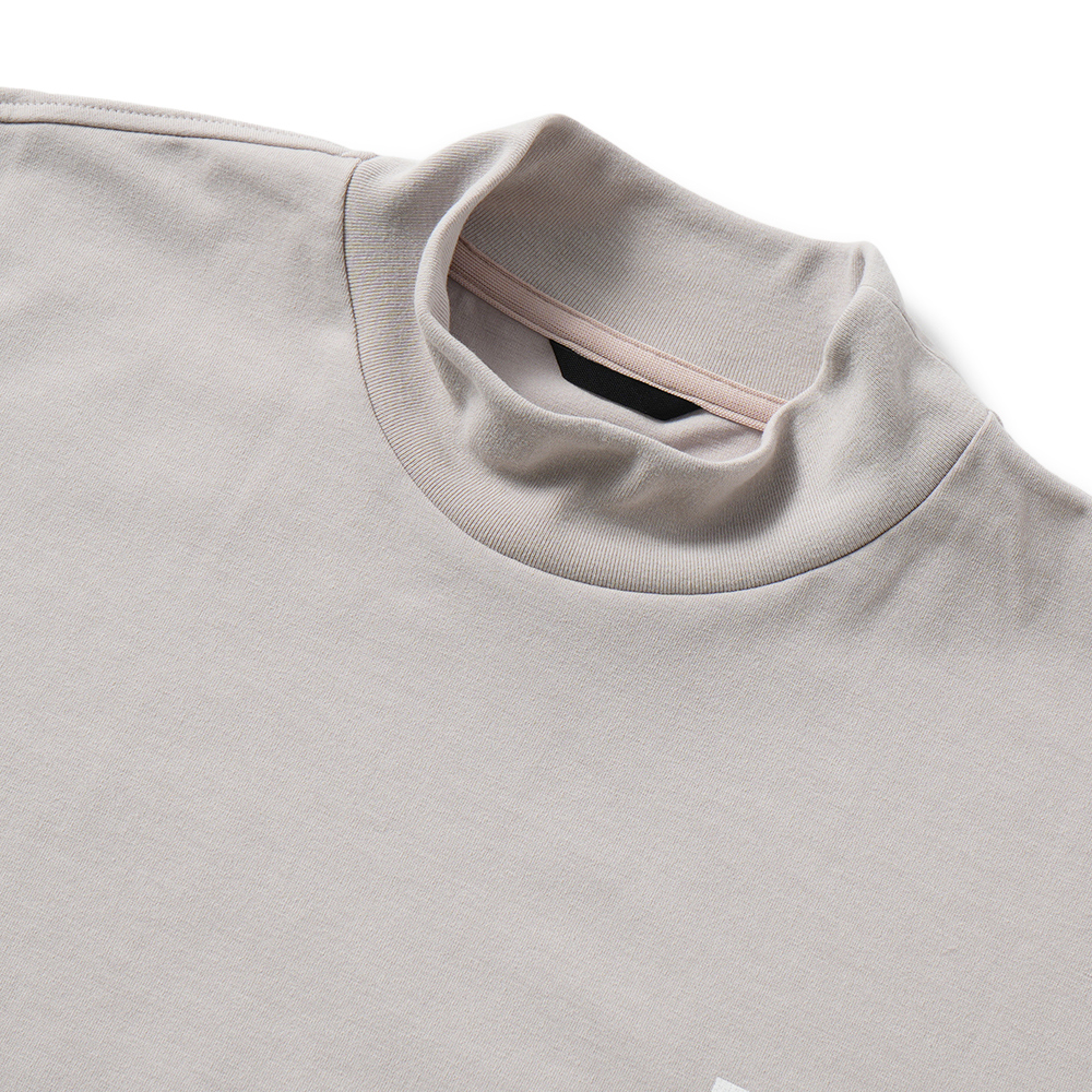 着心地の良さと存在感あるバックプリントが魅力のモックネックTシャツ。
