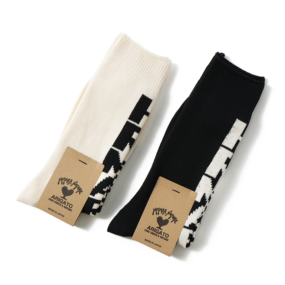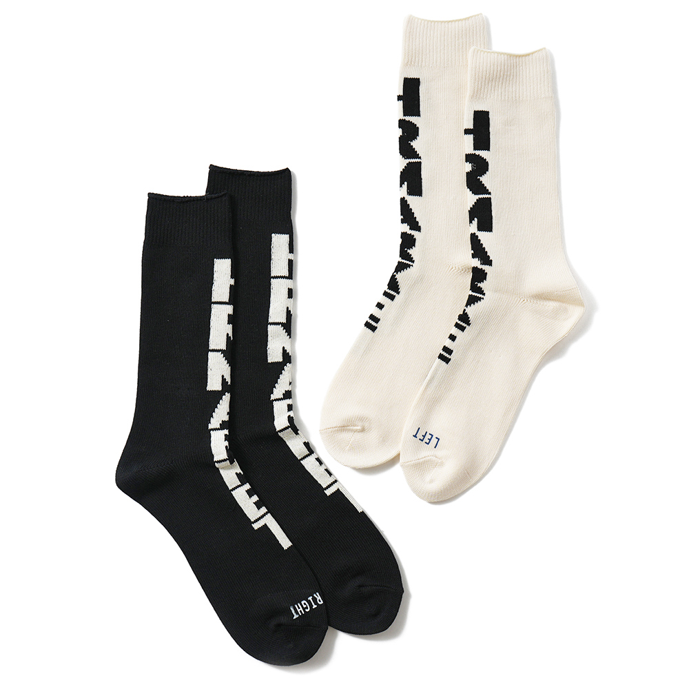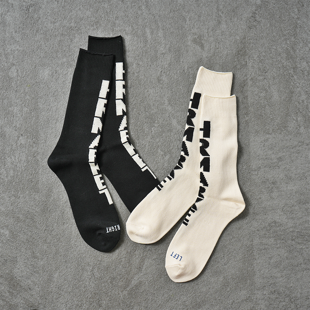 着用時にフロントに施されたHRMARKETのロゴが印象的なソックス。