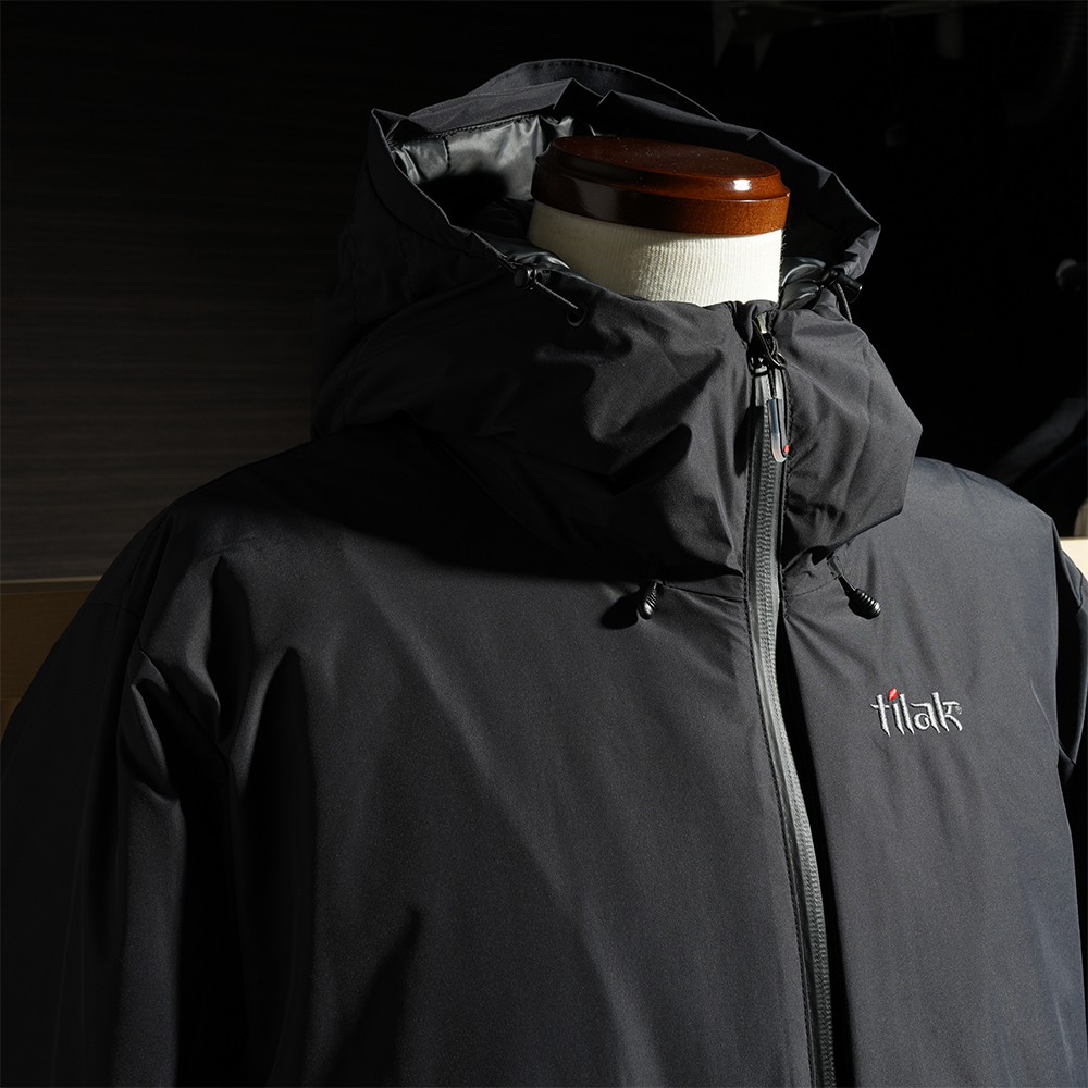 ファブリックには2レイヤーのGORE-TEX Windstopper®を採用。防風・撥水の上、 透湿性も備える信頼性の高いファブリック。中綿には化繊綿のCLIMASHIELD® APEX 100g/m2 を採用。 ダウンと比べると劣る部分もある化繊綿だが、化繊綿は濡れに強く、保温力を低下させにくいことが知られる。 米軍の極寒地用の防寒ウェアにも採用されるほど。さらに同じ化繊綿でもヘタリが少ないことを、Tilakが実際に検証したうえで採用に至っている。
