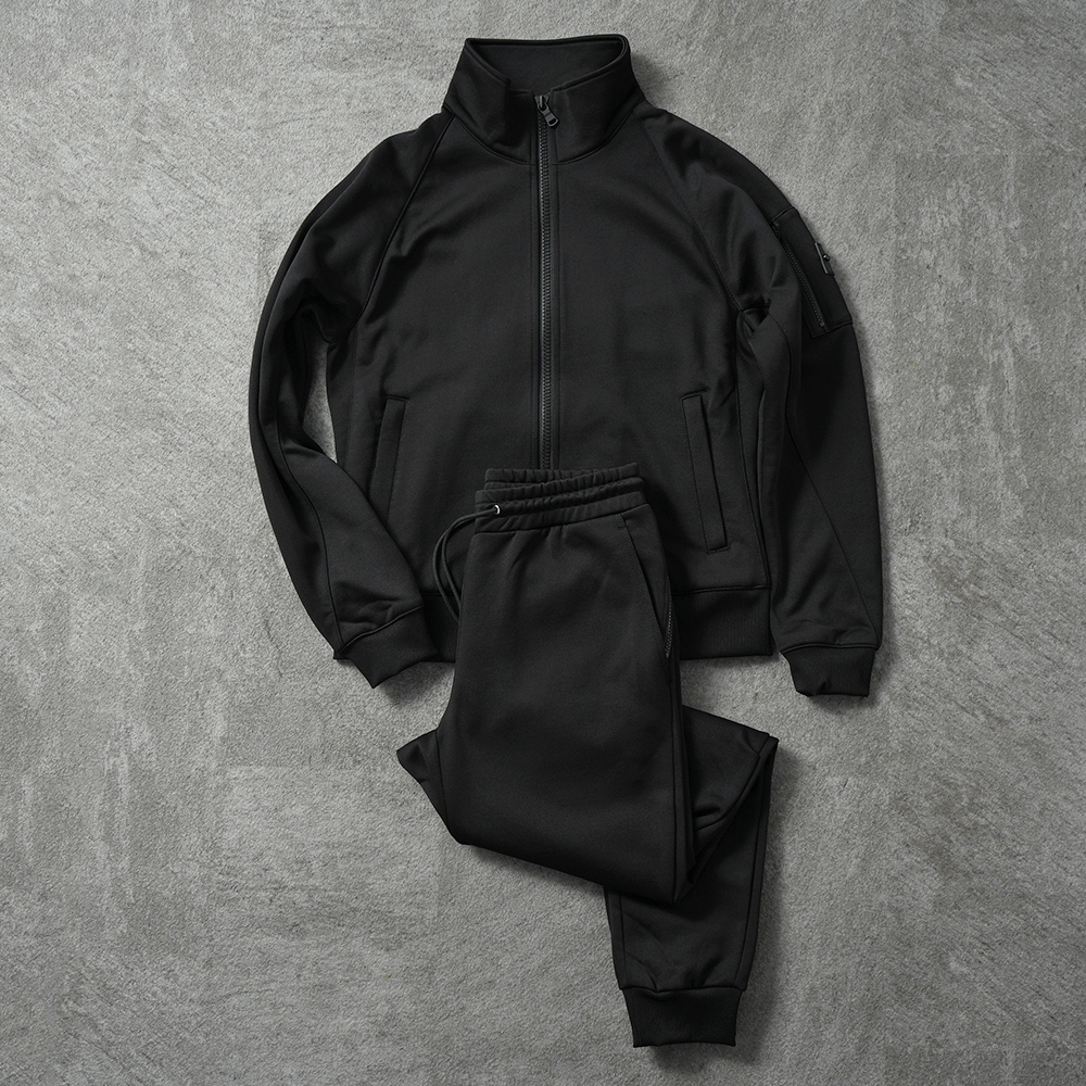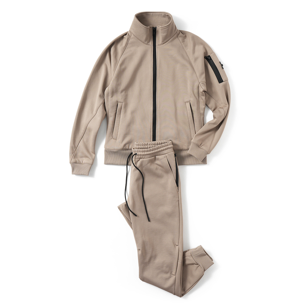 シンプルながら存在感のあるデザインのトラックジャケットと、スポーティでありながらモードな雰囲気を漂わせるトラックパンツ。