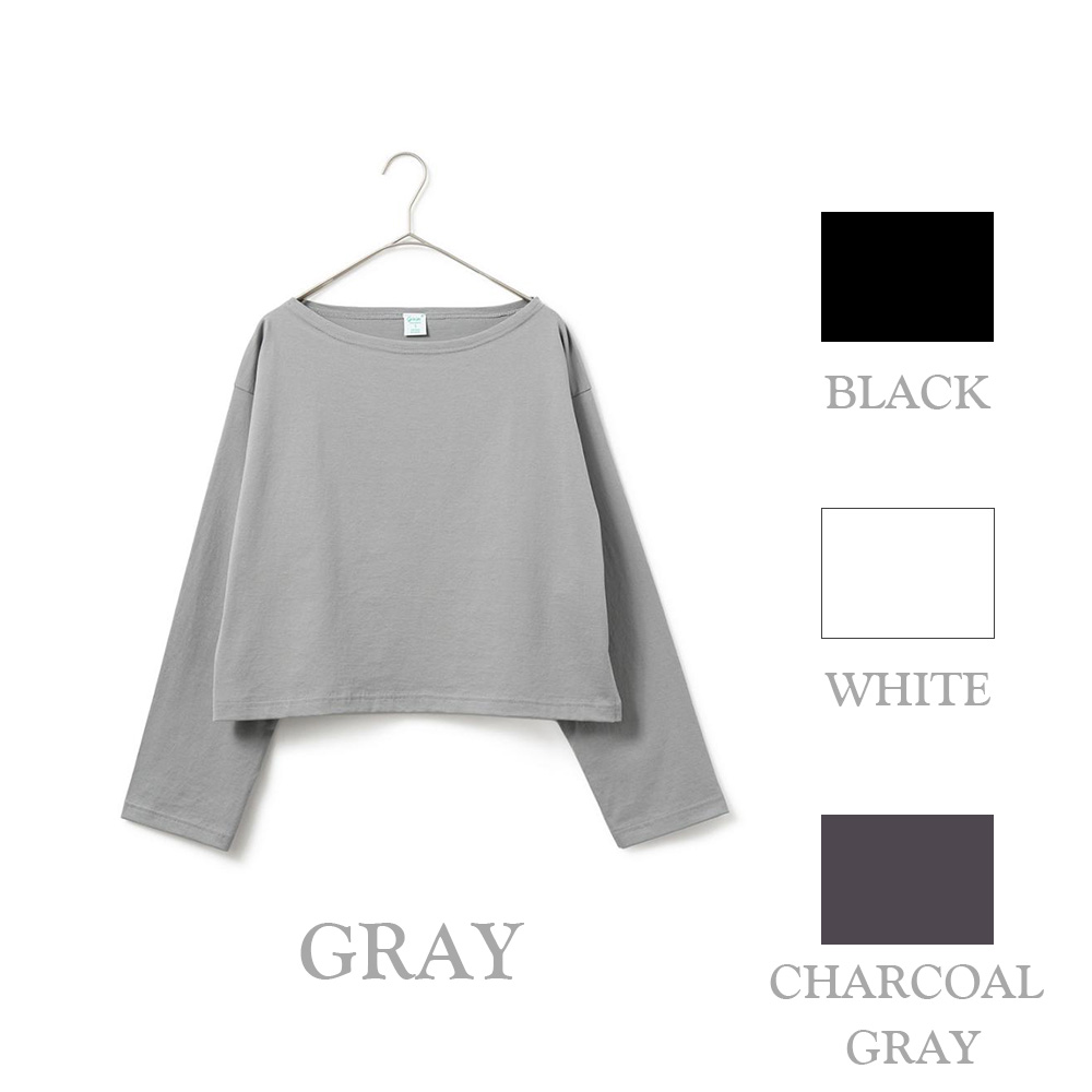 ほどよいクロップド丈が特徴のボートネックカットソー。